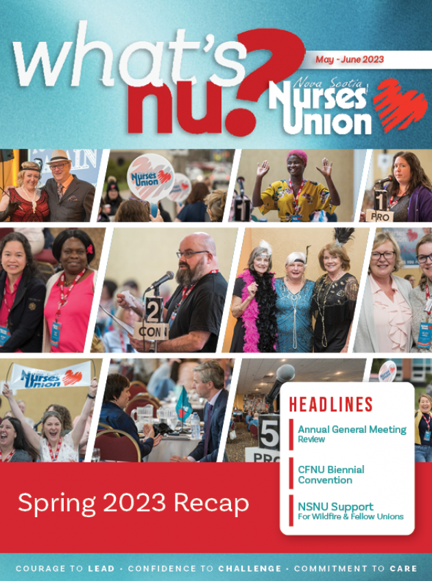 President's Notebook: Thank You for Your SupportMore Nurses Decree: Together, We Got This!More Support for OthersMore PreviousNext Home Resources & Education Newsletters May-June 2023 May-June 2023 Support for OthersNSNU Locals Give Generously to the Mental Health Foundation of Nova Scotia MORE Nurses Decree: Together, We Got This!From June 5-9, more than 1,000 nurseMORE President's Notebook: Thank You for Your SupportMORE Read the full newsletter May-June 2023 NewsletterThere's even more NSNU news and highlights in the full newsletter. Stay up to date and download today. Download Newsletter